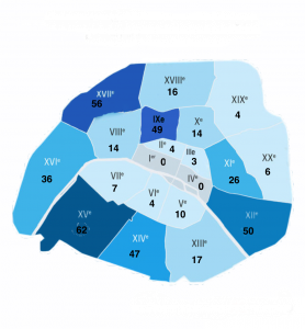 le 15e : 62 ; le 17e : 56; le 12e : 50 ; le 9e : 49 et le 14e : 47.