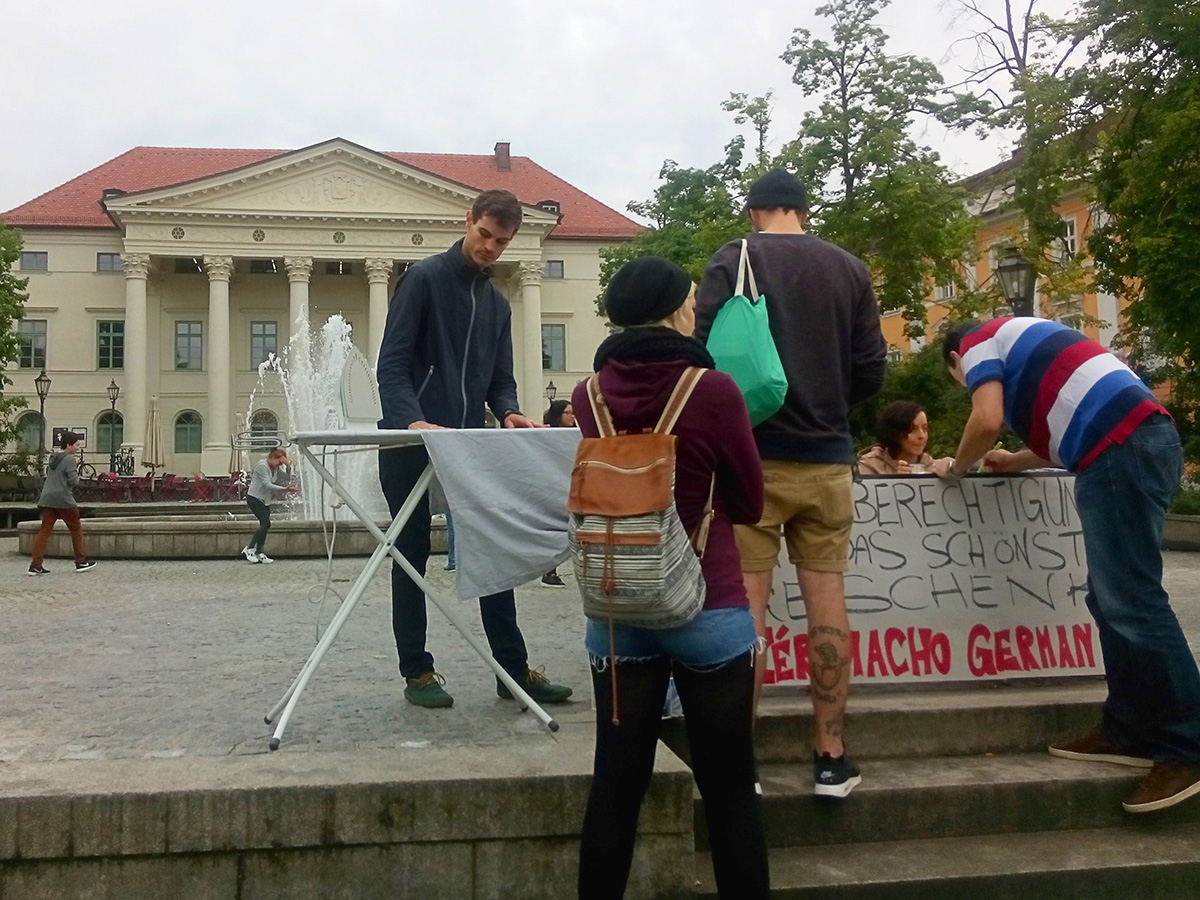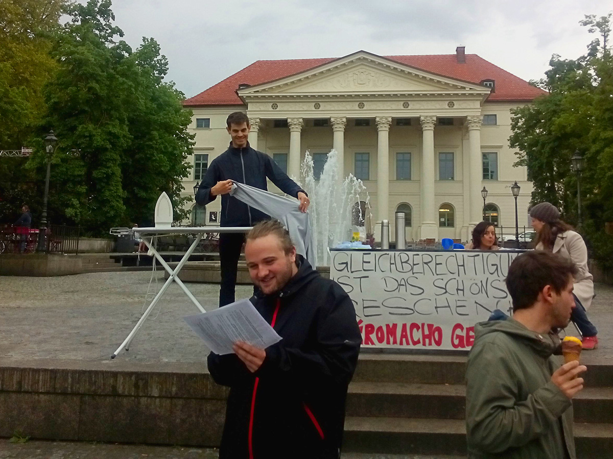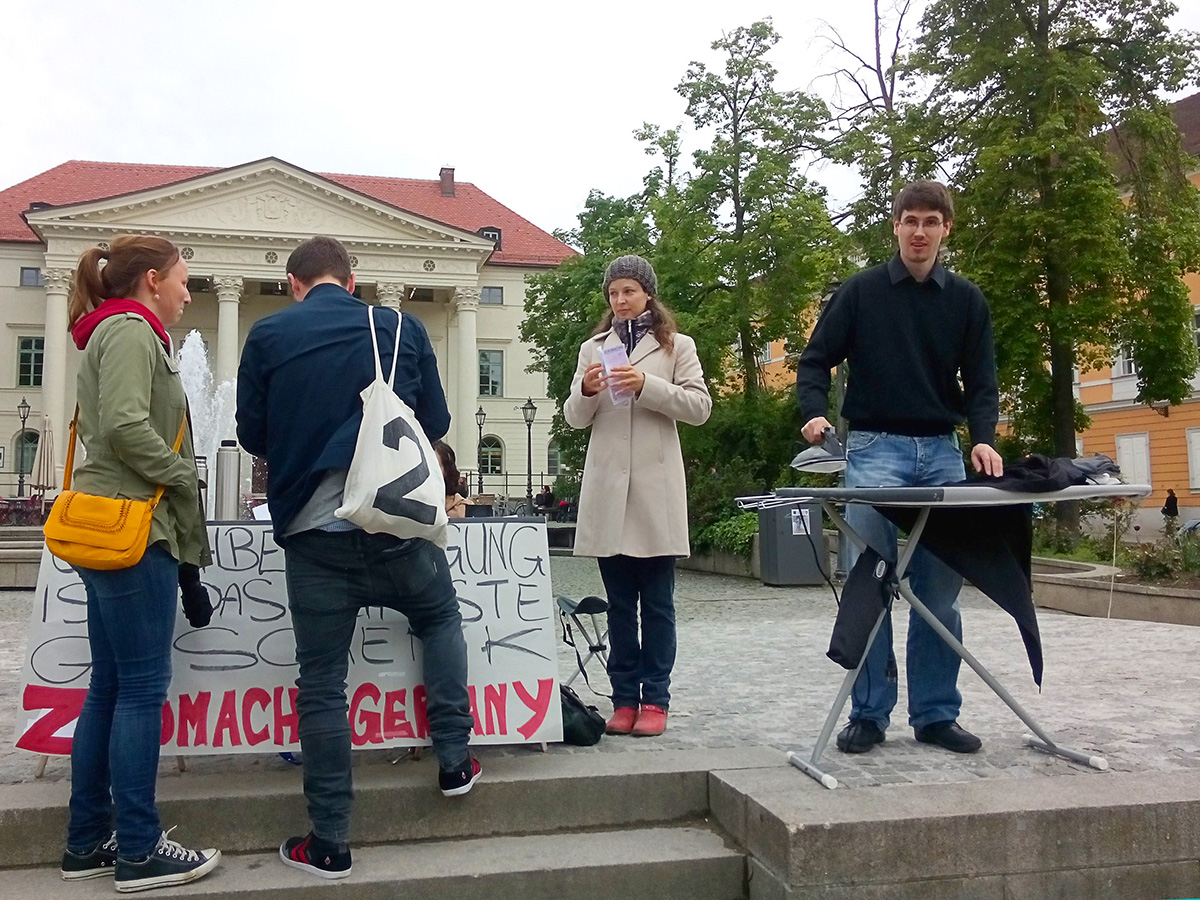 Nouvelle action « Repassons pour l’Égalité » qui a eu lieu le 9 mai en Allemagne à Regensburg, en Bavière.